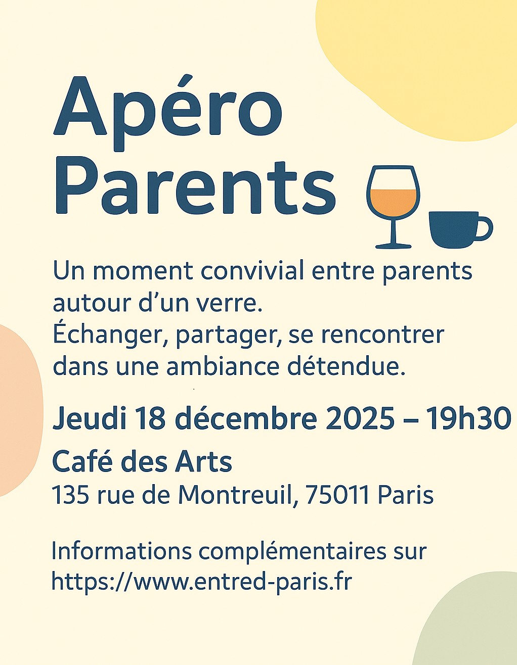 Chaque 3ème jeudi du mois, envie de partager vos expériences, des questions que vous n’oseriez pas aborder, discuter du DT1 sans vos enfants… ou simplement envie de boire un verre ! Vous êtes bienvenus à l’apéro des parents!